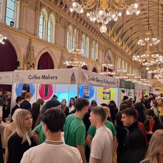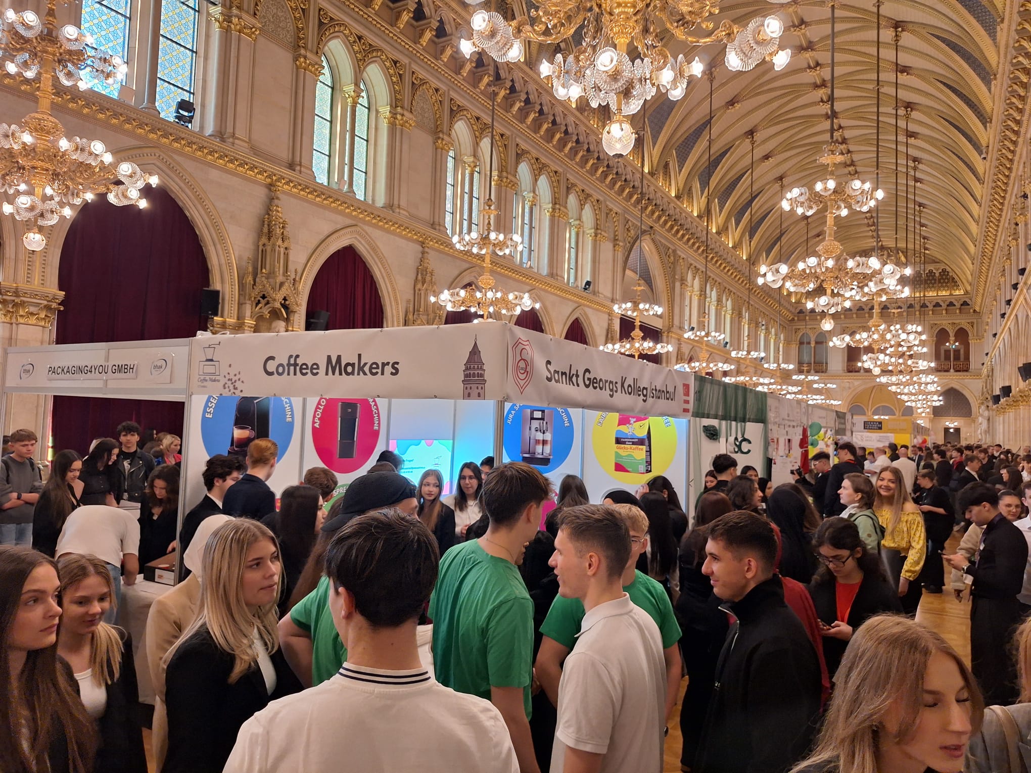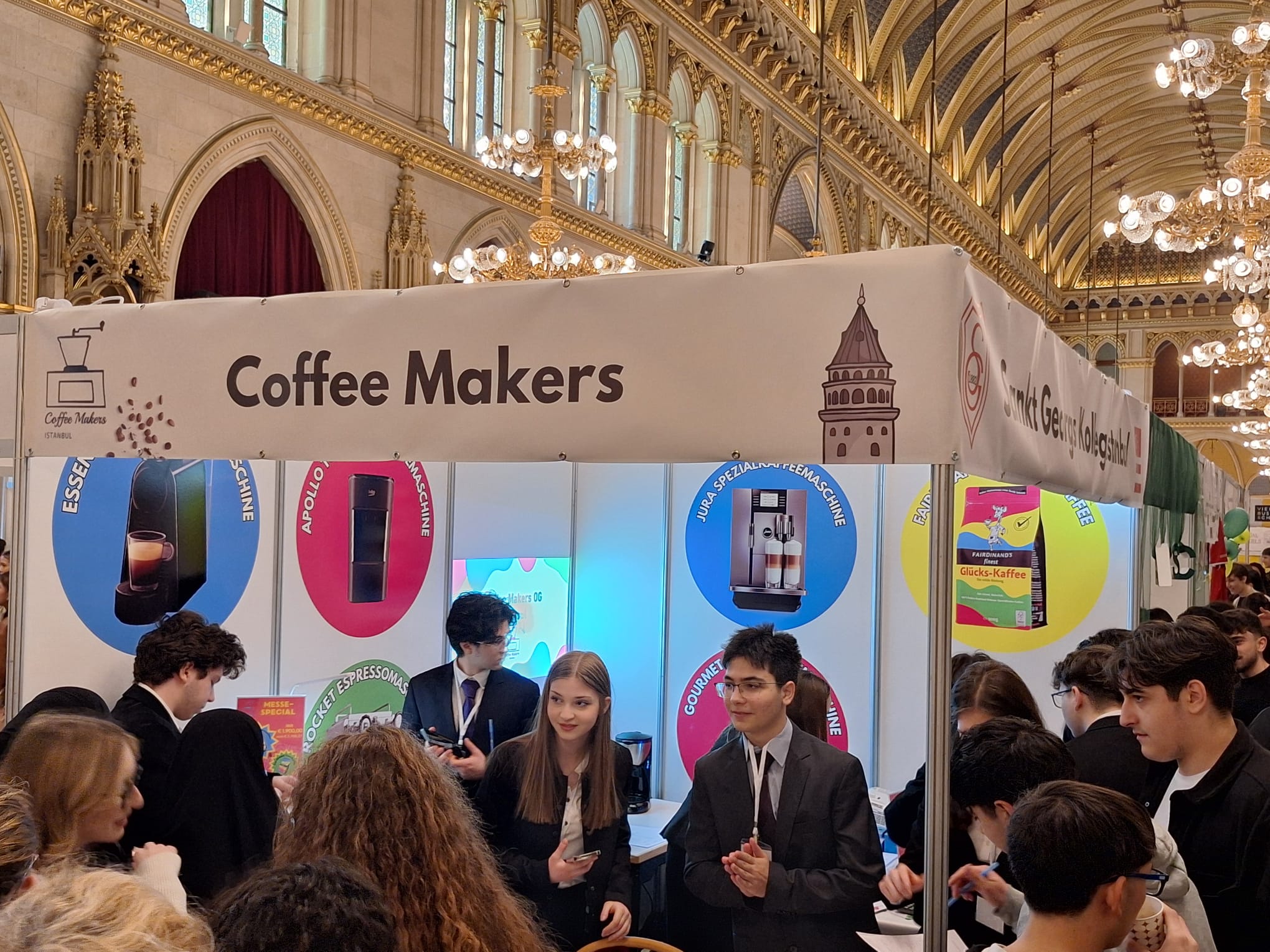 Dank unserer Schule hatten wir als 10. und 11. Ticaret die Gelegenheit, am 10. März im Namen des Sankt Georgs Kollegs auf der Übungsfirmen-Messe auszustellen! Diese Messe fındet alle zwei Jahre in dem wunderschönen Wiener Rathaus statt und gibt den Handelsakademie-Schüler:innen die Möglichkeit, reale Messeerfahrungen zu sammeln. An der Messe nehmen nicht nur österreichische Schüler:innen teil, sondern Schüler:innen aus aller Welt! Wie war also unsere Erfahrung?